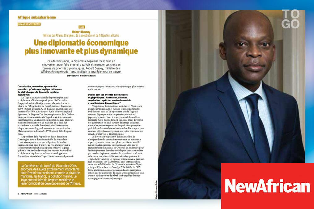 Dans un entretien accordé à New African (juillet-août 2016), le ministre des Affaires étrangères, Robert Dussey, précise les priorités diplomatiques de son pays.