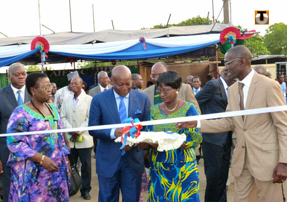 Photo : Jonathan Fiawoo, président de la CCIT coupe le ruban. A sa gauche, Bernadette Léguézim-Balouki, ministre du Commerce