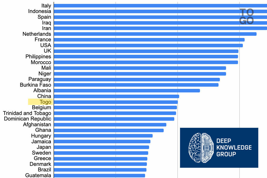 'Deep Knowledge Group' tente d’élaborer un premier classement. L’Italie tient le triste record, devant l’Indonésie, l’Espagne, l’Irak, la France, les Etats-Unis ou encore le Royaume Uni. Autant de pays où le taux d’infection est très important.
