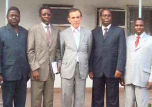 En photo (de gauche à droite) le Doyen Santos de la Faculté de Droit (costume beige), Charles Debbasch et le Professeur Koffi Ahadzi, président de l'Université de Lomé (costume bleu)