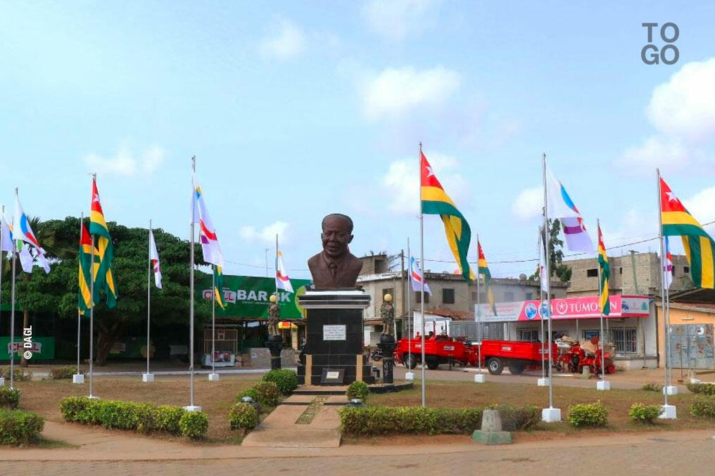 Sur le Boulevard Gnassingbé Eyadema, là où se trouve la stèle de Léopold Sédar Senghor, les drapeaux du Togo et de l’OIF flottent au vent. Une initiative du District autonome du grand Lomé (DAGL).