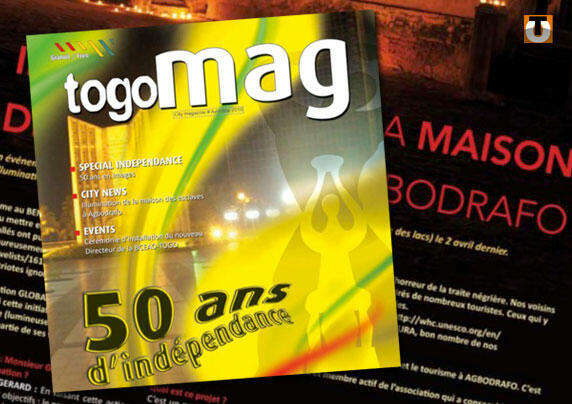 Le nouveau numéro du magazine Togo Mag est paru. Au sommaire un dossier spécial consacré au 50e anniversaire de l’indépendance du Togo avec de nombreuses photos, un sujet sur l’illumination de la Maison des esclaves d’Agbodrafo, un reportage dans l’un des plus anciens restaurants togolais de Paris, le « Mono », et toujours les informations pratiques sur Lomé (restaurants, clubs, etc…).