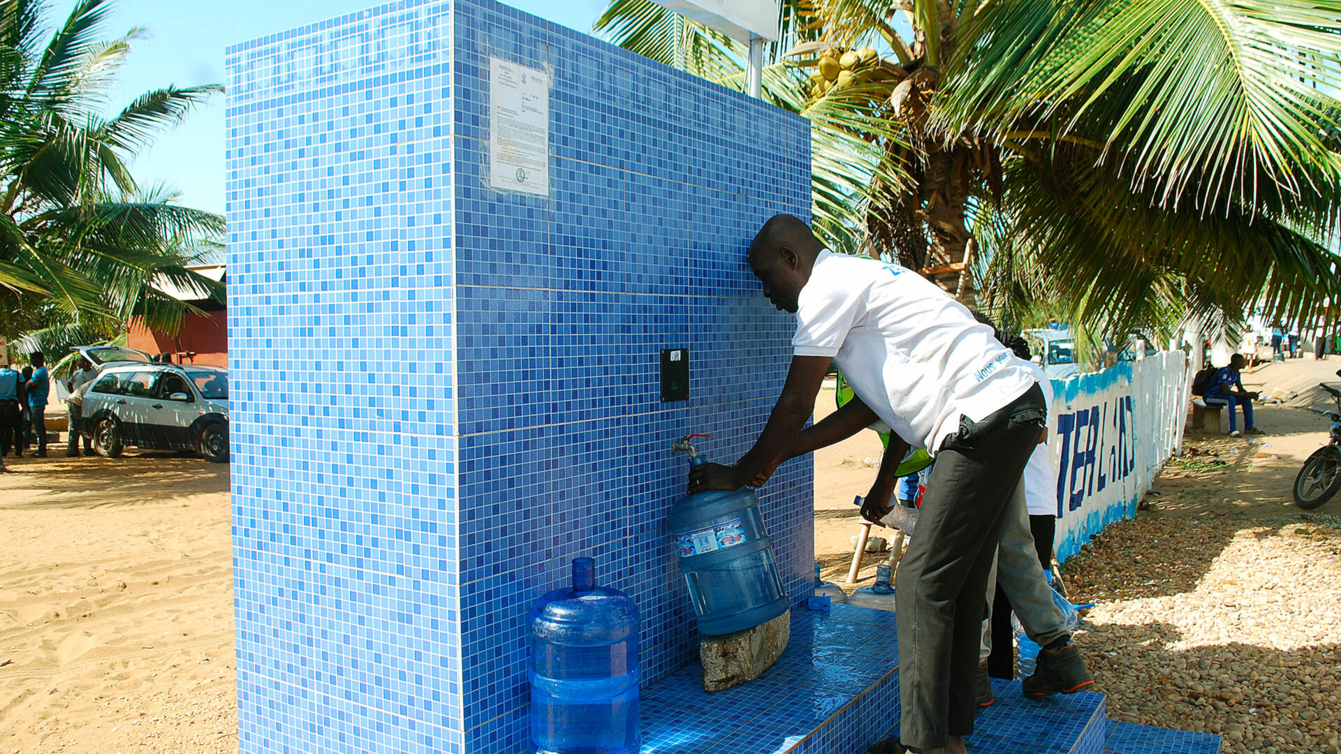 Sur la plage de Lomé, des distributeurs d’eau minéralisée ont été installés. 10F cfa la bouteille de 3 litres. L’opération est soutenue par l’ex star de la boxe, Prinz Lorenzo.