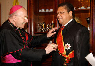 Le Pape Benoît XVI a conféré à l'ambassadeur du Togo auprès du Saint Siège, Félix Kodjo Sagbo, les insignes de Grand Croix de l'Ordre de Saint Grégoire le Grand. C'est la plus haute distinction honorifique civile du Vatican. Une cérémonie s'est déroulée il y a quelques jours à la Nonciature apostolique de Bruxelles. Cérémonie présidée par Mgr Karl-Josef Raubert, Nonce apostolique en Belgique. Etaient également présents, Mgr André Dupuy, représentant du Vatican auprès de l'Union européenne, le président du Comité des ambassadeurs des pays ACP, des responsables politiques belges et de la Commission européenne.