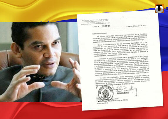 Depuis l'établissement de nos relations diplomatiques, Ie 21 décembre 1990, le Venezuela et Ie Togo ont jeté les bases d’un rapprochement destiné à raffermir les liens de coopération et d'échange entre nos gouvernements et nos peuples à travers des actions de coopération prioritaires visant a en tirer des bénéfices pour les deux nations (…) », écrit M. Bolivar.
