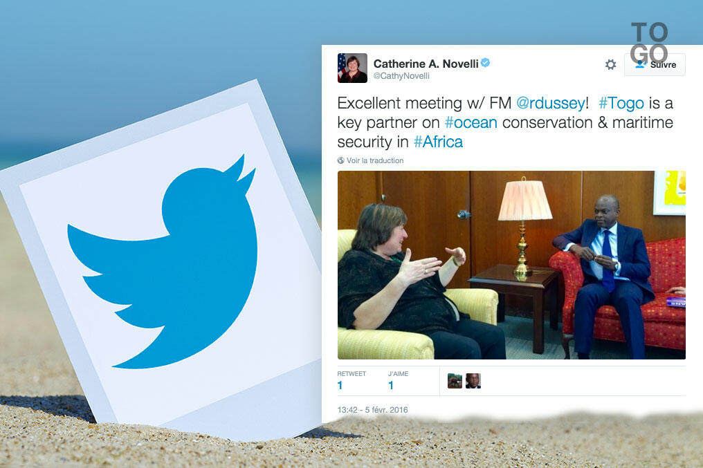‘J’ai eu un excellent entretien avec Robert Dussey. Le Togo est un partenaire clé pour la protection des océans et la sécurité maritime en Afrique’. C’est ce qu’a écrit vendredi sur son compte Twitter Catherine Novelli, la sous-secrétaire d'État US pour la Croissance économique, l'Energie, et l'Environnement.