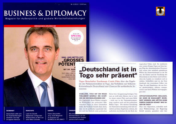 Le magazine allemand ‘Business & Diplomacy’ vient de publier un dossier consacré à la coopération entre l’Allemagne et le Togo, illustré par une interview de l’ambassadeur à Berlin, Essohanam Comla Paka.