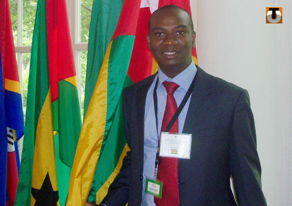 En Photo : Erick Kaglan pose devant le drapeau togolais à la Maison Blanche