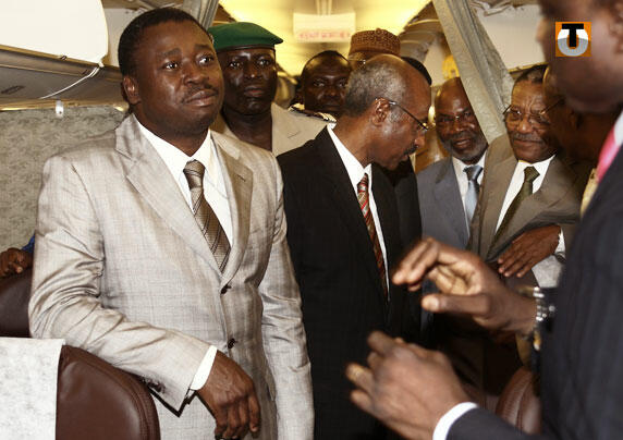 En photo : le président Faure Gnassingbé à bord de l’un des 737 d’Asky lors du lancement de la compagnie le 14 janvier 2010