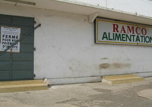 En photo : l'un des magasins Ramco situé à Lomé. Sur la porte, une affiche indiquant que les lieux sont fermés pour non paiement d'impôt