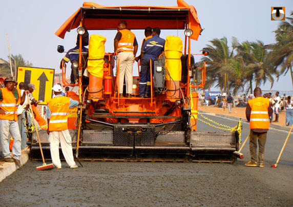 Les travaux d'enrobement de la portion de route entre Aflao (frontière du Ghana) et le Boulevard Circulaire ont débuté. Les engins de travaux publics appliquent un premier revêtement qui assurera une grande stabilité au sol avant de laisser place au goudron.