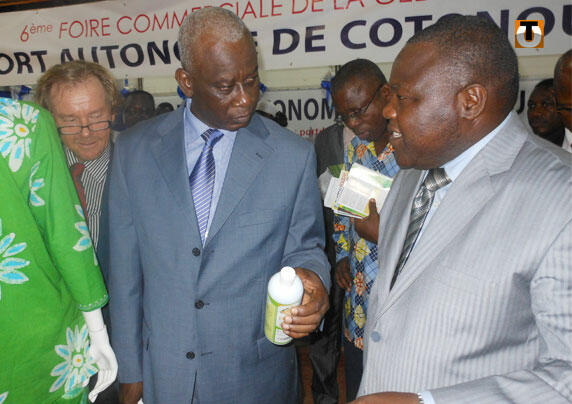 Kossi Mensan Ewovor, le ministre de l’Agriculture, s’est rendu lundi à la Foire de Lomé où son ministère a loué un imposant stand où sont exposés les produits directement transformés au Togo.
