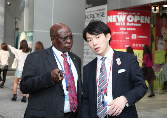En photo : Adji Otéth Ayassor dans les rues de Tokyo en compagnie de Tsuyoshi Oguchi du ministère Japonais des Finances