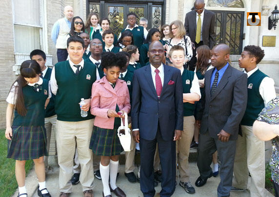 En photo : les élèves et leurs professeurs posent devant l’ambassade du Togo à Washington. Au premier plan, l’ambassadeur Kadangha Limbiyé Bariki