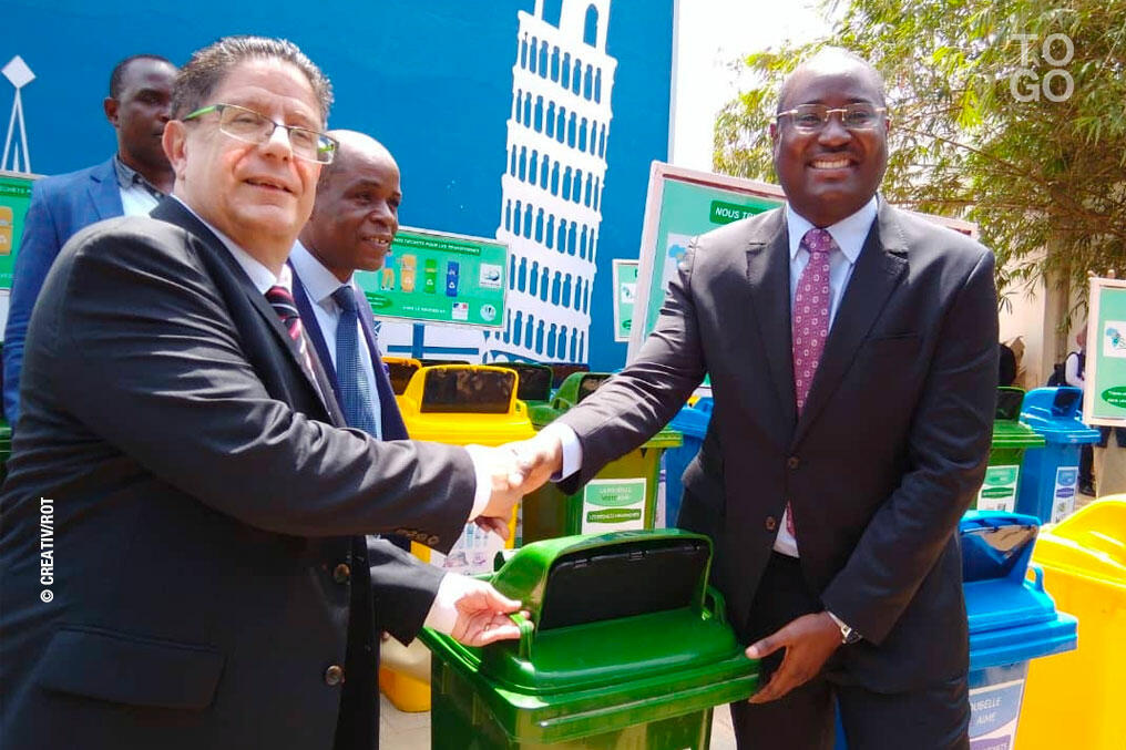 Marc Vizy, l’ambassadeur de France au Togo, a remis un lot d’une soixantaine de poubelles à l’association en présence du maire de la commune du Golfe 3 (Lomé), Kamal Adjayi. C’est dans cette ville qu’a lieu l’opération pilote.