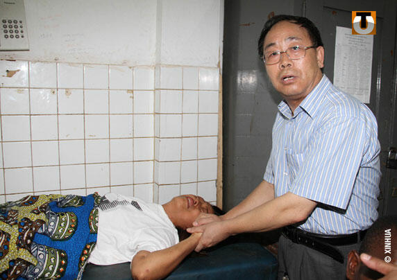 En photo : Chai Mingwa, conseiller à l’ambassade de Chine à Lomé au chevet de la victime à l’hôpital