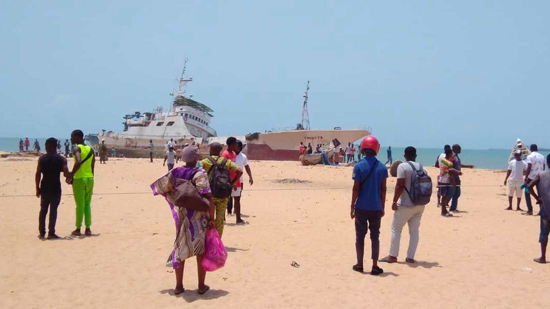 C’est l’attraction du jour à Lomé. Un navire échoué depuis hier sur la plage. Le chalutier venait du Ghana pour être réparé dans un chantier naval togolais.