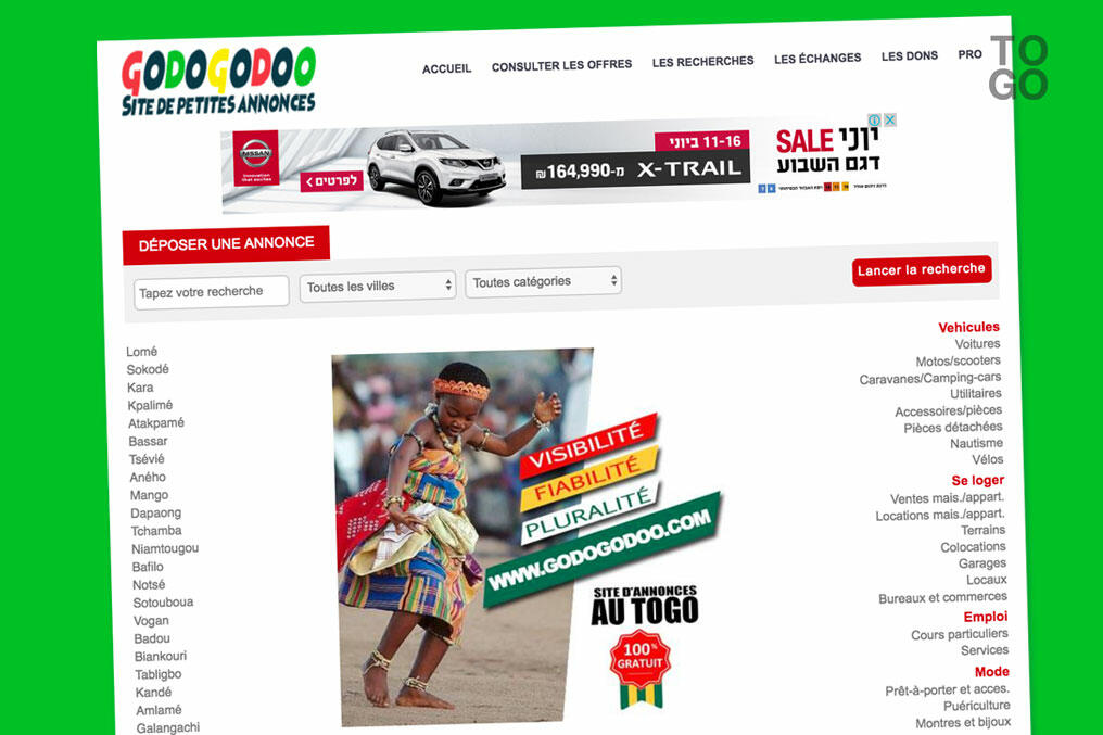 ‘Godogodoo’ offre la possibilité de déposer une annonce par thème : voitures, logements, emplois, électronique …