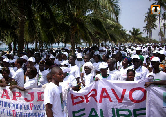 Opposition leader Jean-Pierre Fabre claims that he was robbed of victory by Gnassingbe in the March 4 presidential poll and supporters of his Union of Forces for Change (UFC) turned out in force for the protest, donning yellow tee-shirts before a planned march through the city.