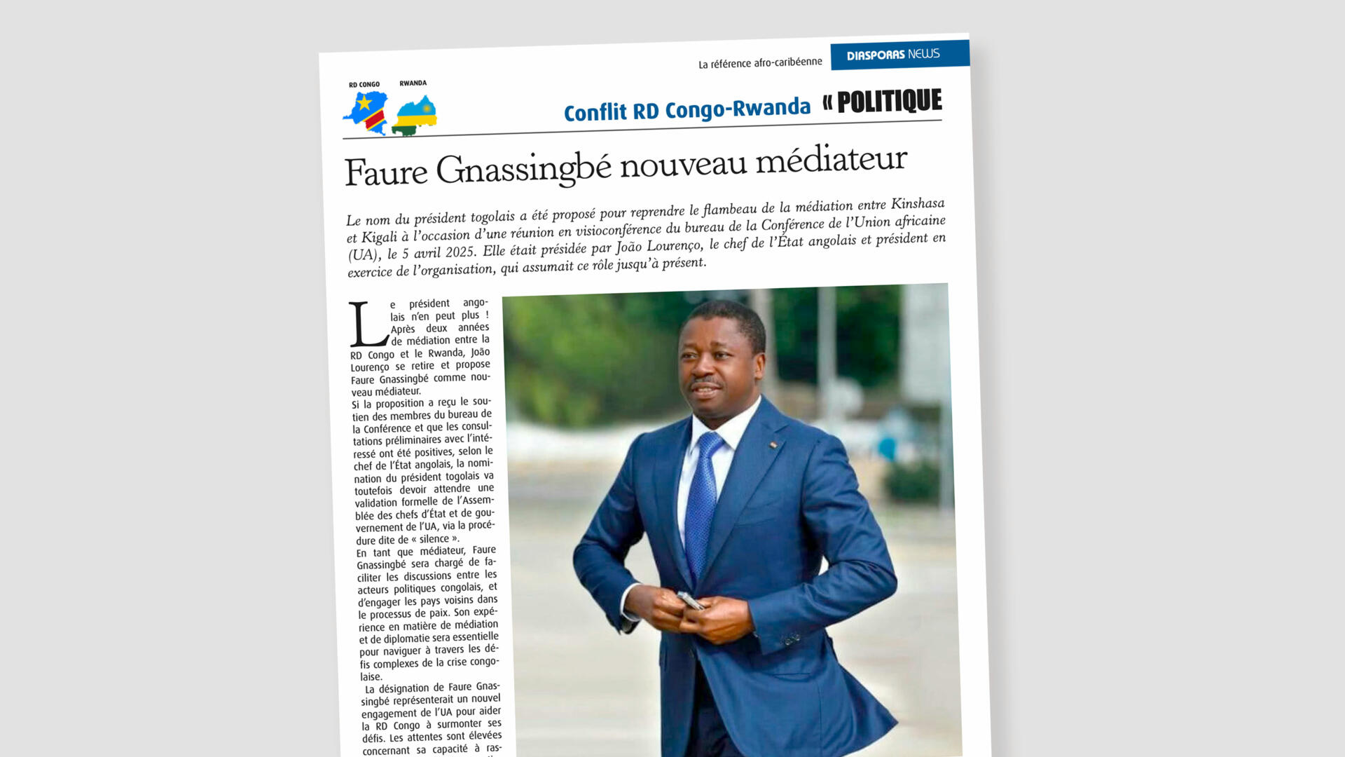 Faure Gnassingbé a été choisi par l’Union africaine pour assurer une médiation entre la RDC et le Rwanda sur le conflit à l’est du Congo largement contrôlé par les miliciens du M23 soutenus par Kigali.