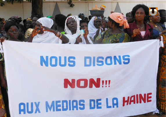 Des femmes appartenant au «Mouvement des Jeunes pour la popularisation de la bonne Gouvernance» (MJPG) ont observé un sit-in jeudi devant les bureaux de la Haute Autorité de l’Audiovisuelle et de la Communication (HAAC) pour protester contre les dérives de certains médias à la veille de la Journée mondiale de la liberté de presse.