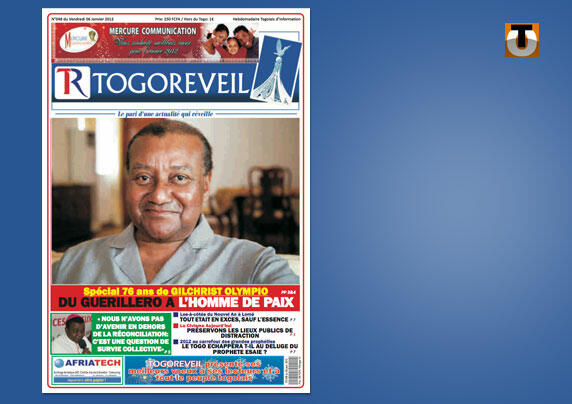 Gilchrist Olympio est à la Une vendredi de Togo Réveil. A l’occasion des 76 ans du leader de l’UFC (opposition), l’hebdo retrace le combat politique du fils du premier président du Togo.