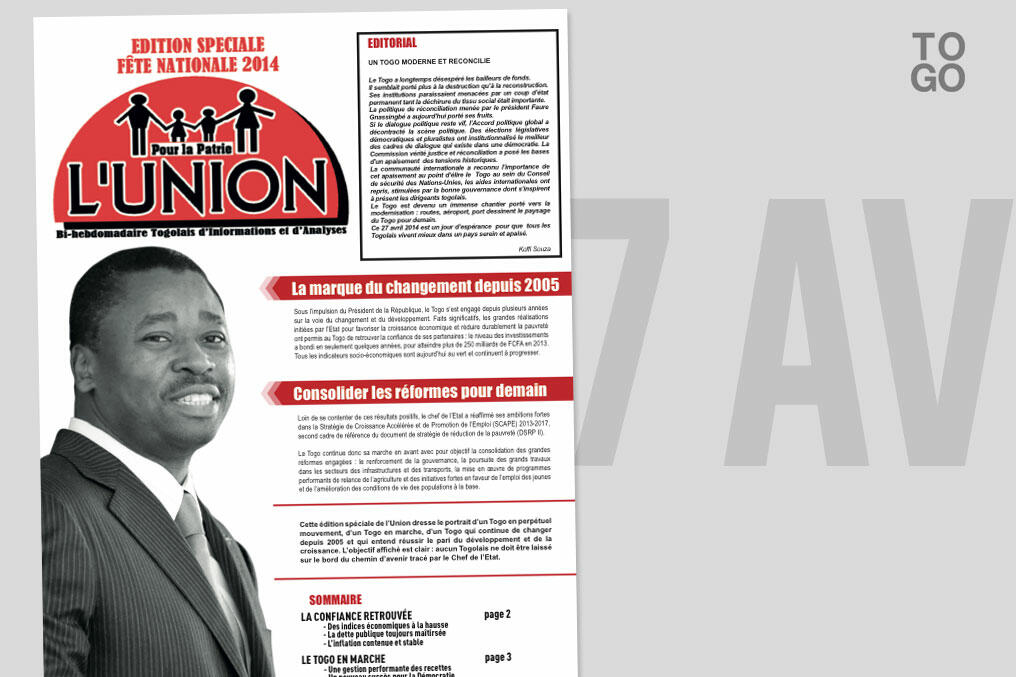 A l’occasion du 54e anniversaire de l’indépendance du Togo, L’Union a publié samedi un numéro spécial consacré aux progrès réalisés par le pays depuis l’arrivée aux affaires du président Faure Gnassingbé.