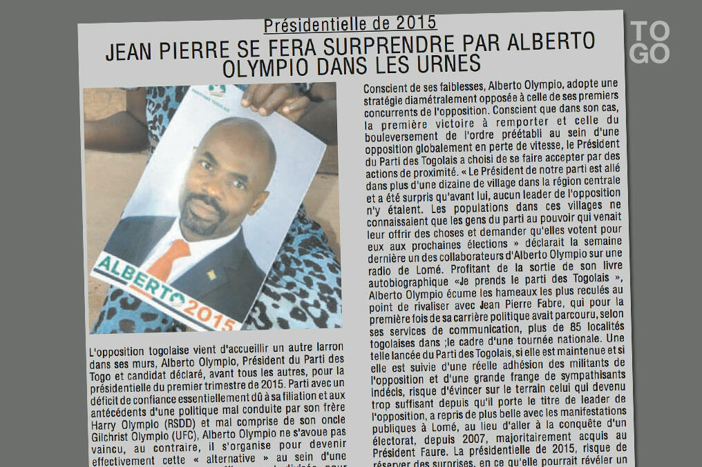 Il souhaite d’ailleurs ne pas perdre de temps en devenant directement président de la République. Il sera candidat en 2015. Reste maintenant à susciter l’adhésion des militants et sympathisants, souligne mercredi Togo Réveil.