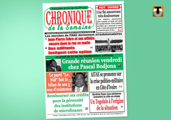 Chronique de la Semaine paru jeudi annonce un dialogue élargi pour évoquer le projet de loi sur les manifestations publiques qui fait débat depuis plusieurs jours. Les partis politiques se retrouveront vendredi chez Pascal Bodjona ; la discussion risque d’être agitée.