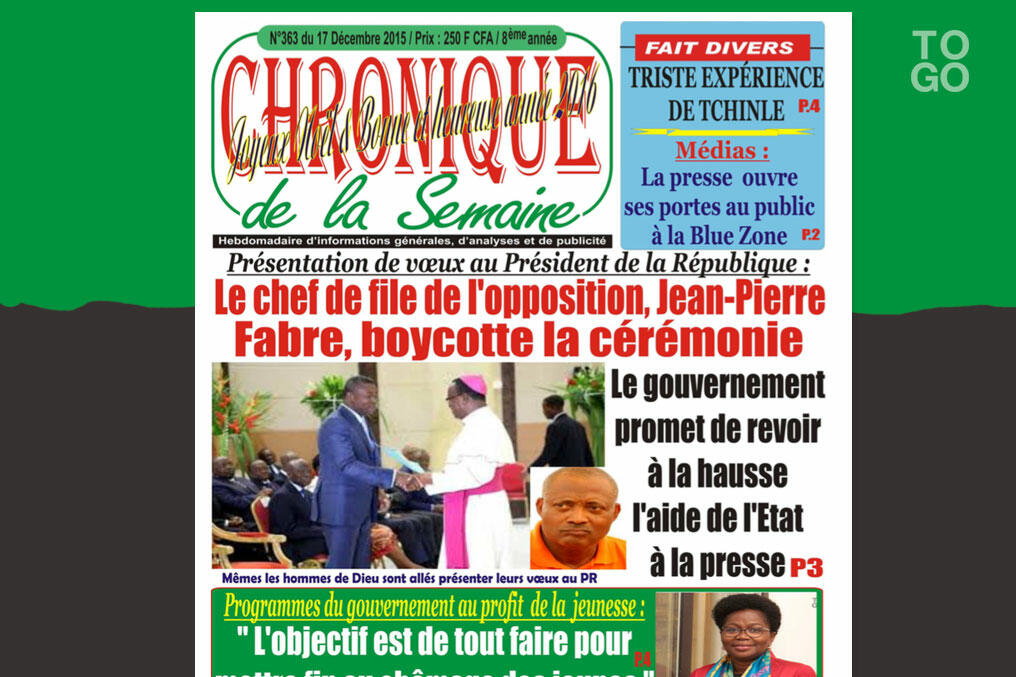 ‘En boycottant royalement les cérémonies officielles qui sont des occasions d'échanges sur des questions politiques de l'heure, le chef de file de l'opposition, Jean-Pierre Fabre, prouve clairement qu'il ne sait pas saisir les occasions de rentrer par la grande porte dans l'histoire du Togo’, écrit le journal.