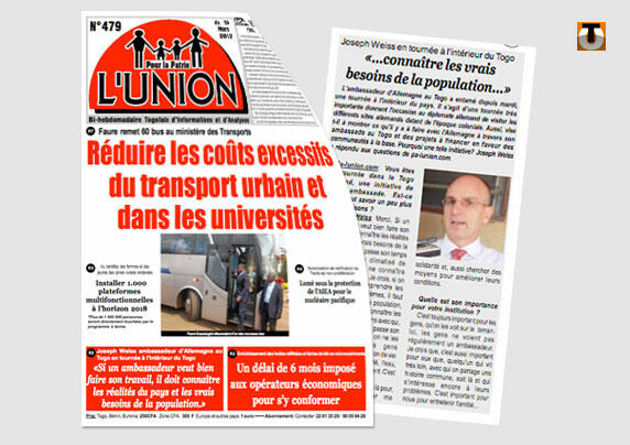 L’ambassadeur d’Allemagne au Togo vient d’effectuer une tournée dans le pays. Il en explique les raisons vendredi dans les colonnes de L’Union. Et le diplomate a le mérite de la franchise.