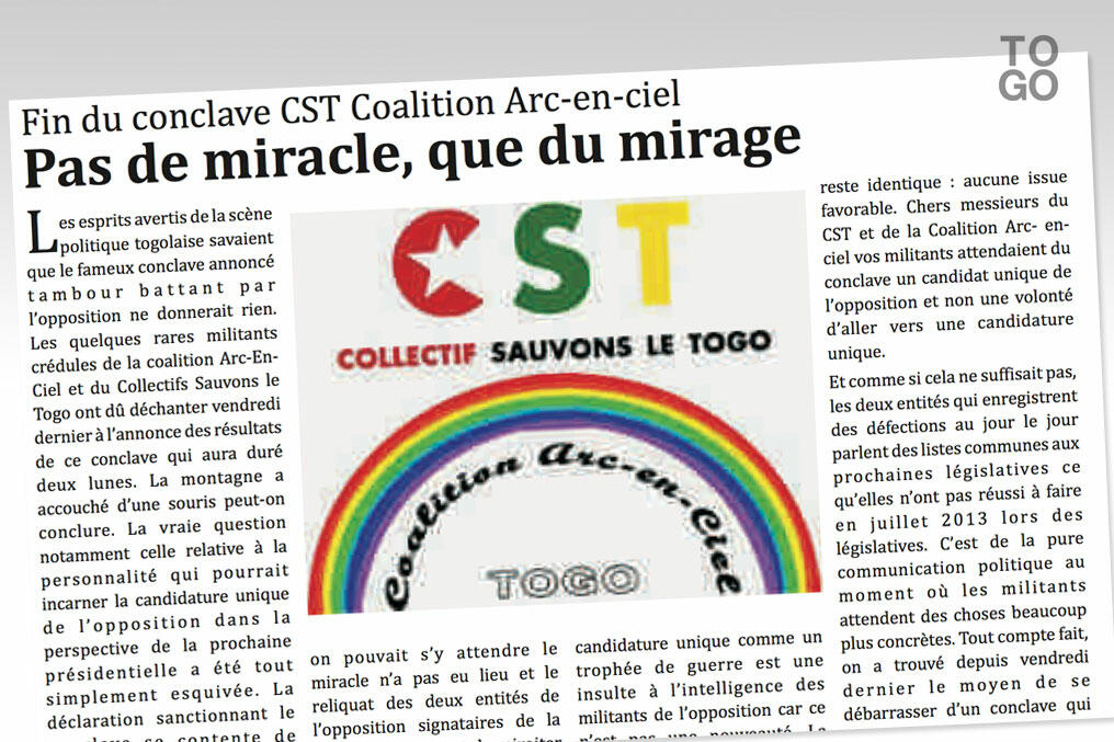 Le conclave CST-Ar en ciel s’est achevé sur un constat d’échec. La montagne a accouché d’une souris, observe mercredi Le Libéral.