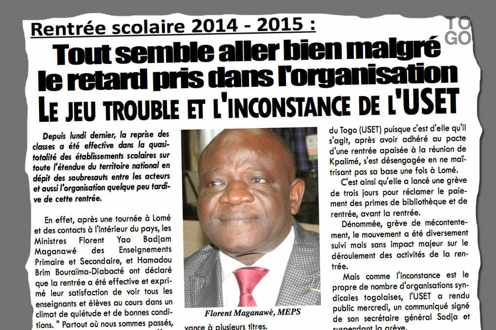 La rentrée scolaire s’est déroulée dans de bonnes conditions mais L’Eveil de la Nation, en kiosque vendredi, dénonce le jeu trouble de l’USET, un syndicat d’enseignant qui avait appelé – sans succès – à la grève.