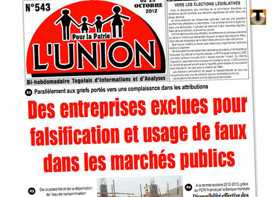 Les autorités ont décidé d’agir en excluant certaines entreprises des marchés publics pour falsification et usage de faux. C’est L’Union qui l’indique mardi en donnant quelques exemples de sociétés aux pratiques pour le moins contestables. Ainsi, ETCBTP s’est vue interdire de toute soumission pendant trois ans par l’Autorité de régulation.