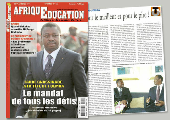 Le magazine Afrique Education vient de publier un dossier consacré à l’élection de Faure Gnassingbé à la tête de l’Union économique et monétaire ouest-africaine (UEMOA) dont un sommet extraordinaire doit se tenir le 30 mai à Lomé.