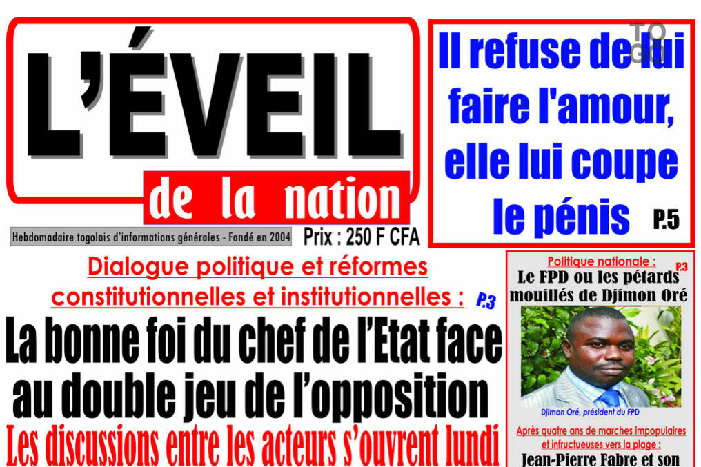 La volonté manifeste et la bonne foi du chef de l'Etat, Faure Gnassingbé de faire aboutir le processus de réformes ne sont plus à démontrer. Mais qu'a-t-on en face ? s’interroge L’Eveil de la Nation paru vendredi.