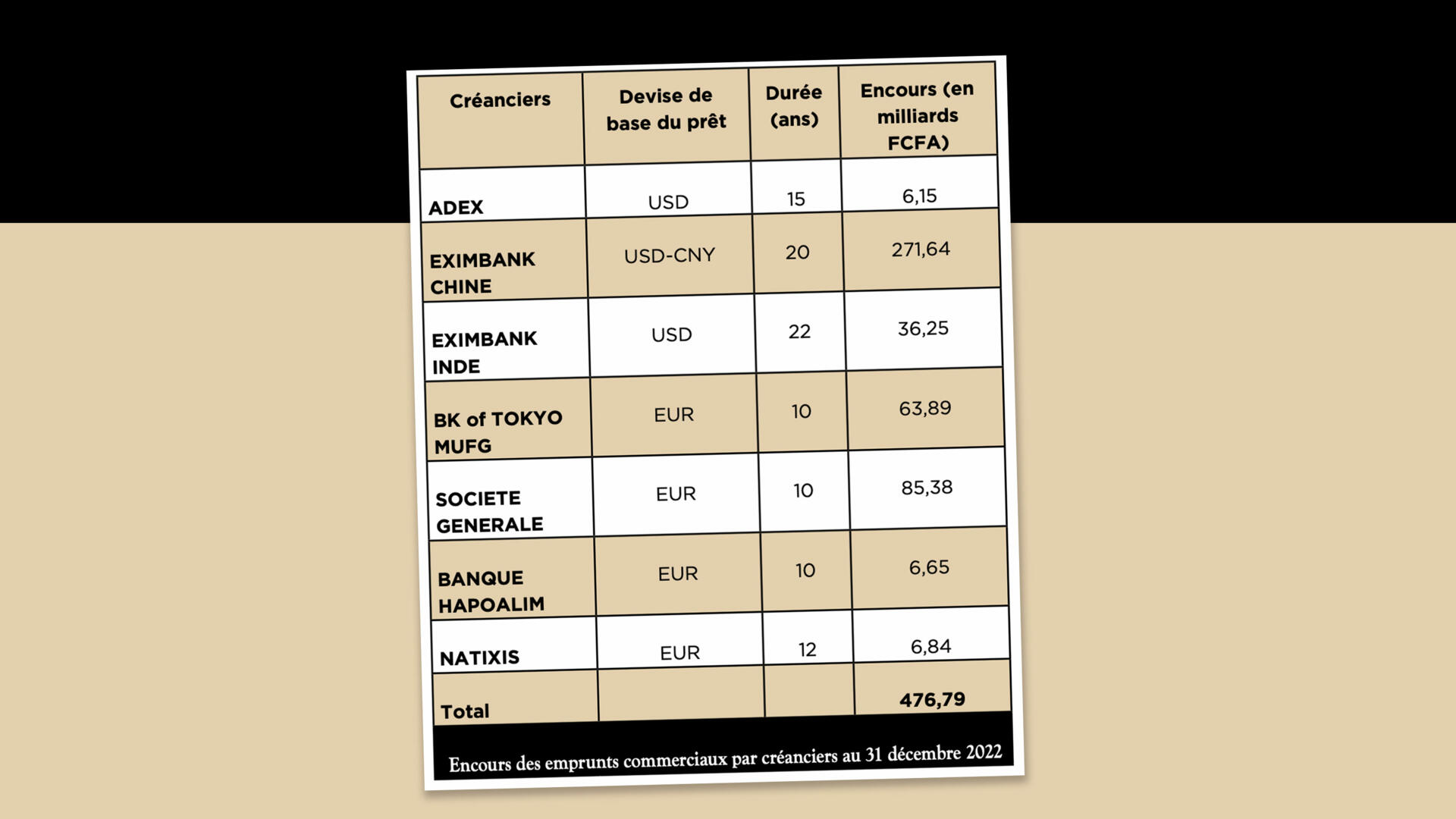 Une enquête détaillée qui détaille la palette des créanciers étatiques ou privés : France, Belgique, Arabie saoudite, Chine, Israel, Koweit …