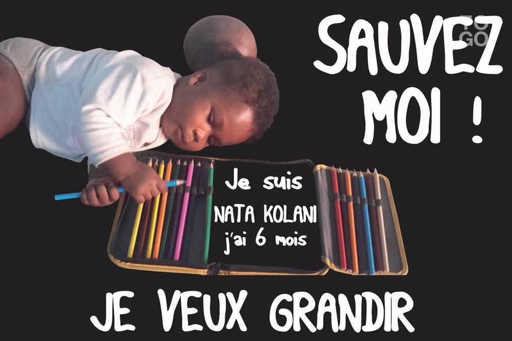Natalma Kolani souffre d'une malformation (meningo-encephalocele) grave à la tête, mais curable à condition de pouvoir l’évacuer en Allemagne afin d’être traité. Mais pour cela, la générosité du public est indispensable.