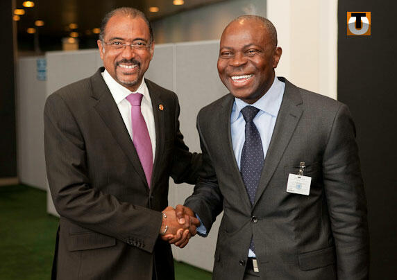 En photo : Michel Sidibé (gauche), le directeur exécutif d’ONUSIDA et le Premier ministre Gilbert Houngbo en septembre 2010 à New York