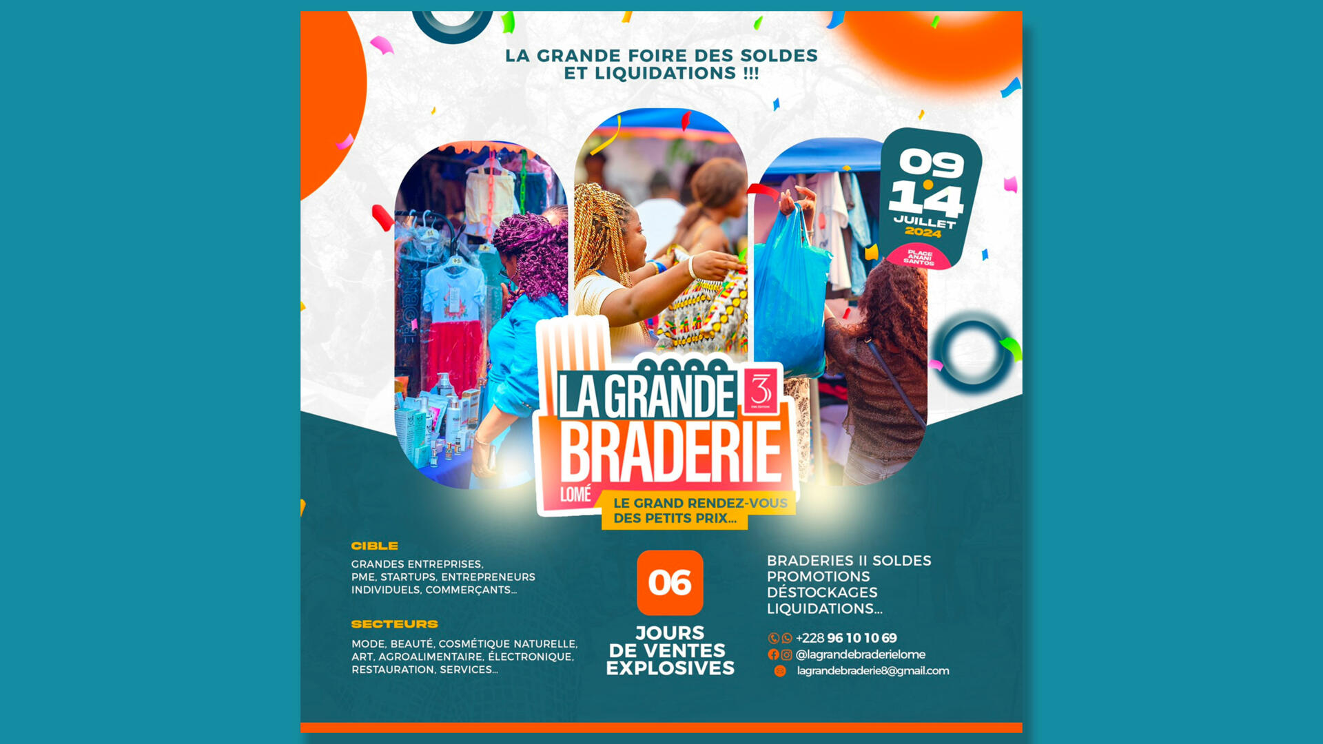 Ne ratez pas l’évènement. La grande braderie de Lomé aura lieu du 9 au 14 juillet. ‘Six jours de ventes explosives’, annoncent les organisateurs.
