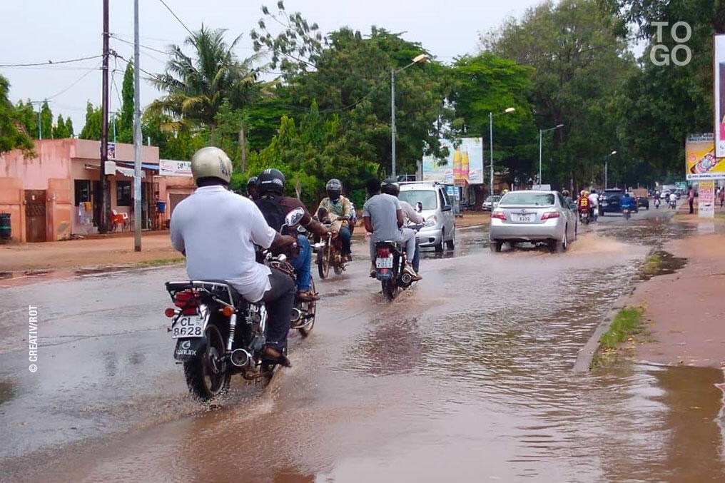 Sur le Boulevard du Haho, proche de l'aéroport international de Lomé, la circulation s’avère compliquée à moins de disposer d’un robuste 4X4.