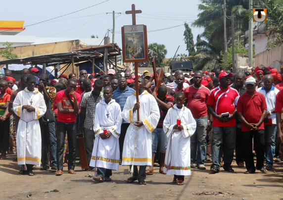 Des milliers de fidèles catholiques ont participé dans la matinée à Lomé au traditionnel chemin de croix de la Semaine Sainte, période la plus importante du calendrier catholique, qui s'achèvera dimanche avec la fête de Pâques.
