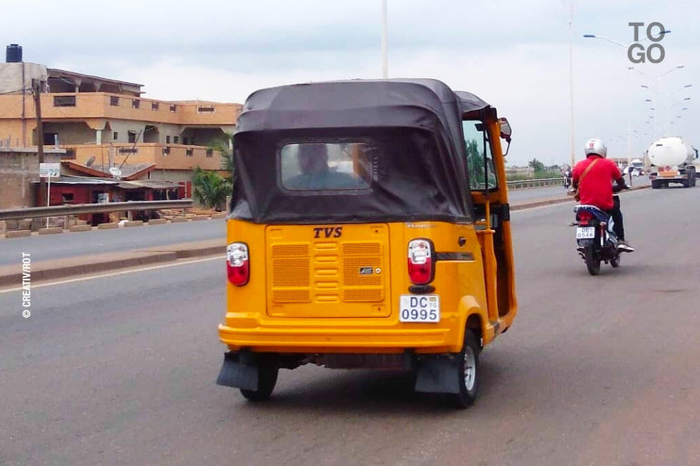 Le Togo a adopté le rickshaw. Ces tricycles conçus en Inde sont utilisés pour le transport des personnes et des marchandises.