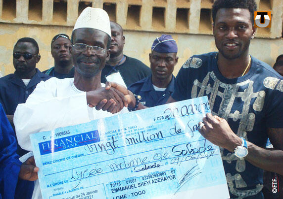 Le joueur a également remis un chèque de 20 millions pour la rénovation du lycée moderne de Sokodé.