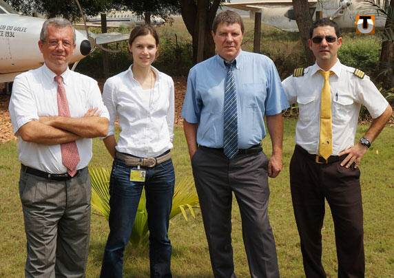 En photo : (de gauche à droite) Francis Richard, délégué régional Air France (basé à Abidjan), Sophie Sigwalt, instructrice professionnelle, Denis Jegu, représentant d’Air France au Togo et Tarek Boustani, président de l’Aéroclub et commandant de bord à Asky